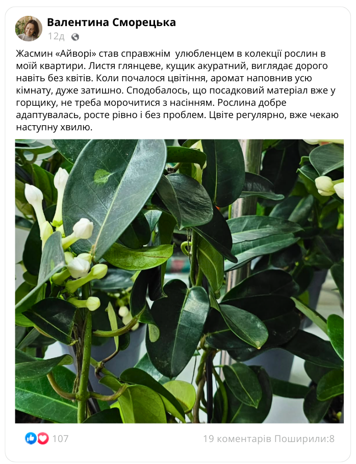 Що кажуть наші покупці про кімнатний жасмин «Айворі»?